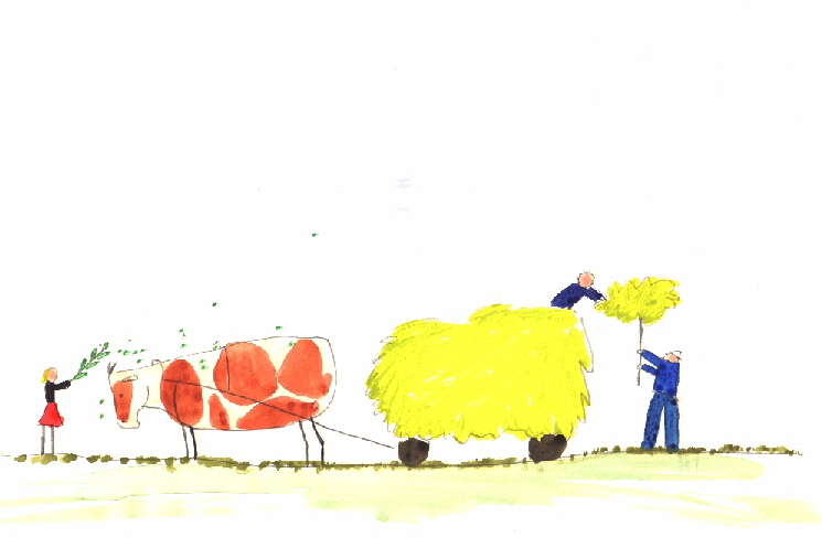 mit vielen Bildern, von Kindern gemalt |